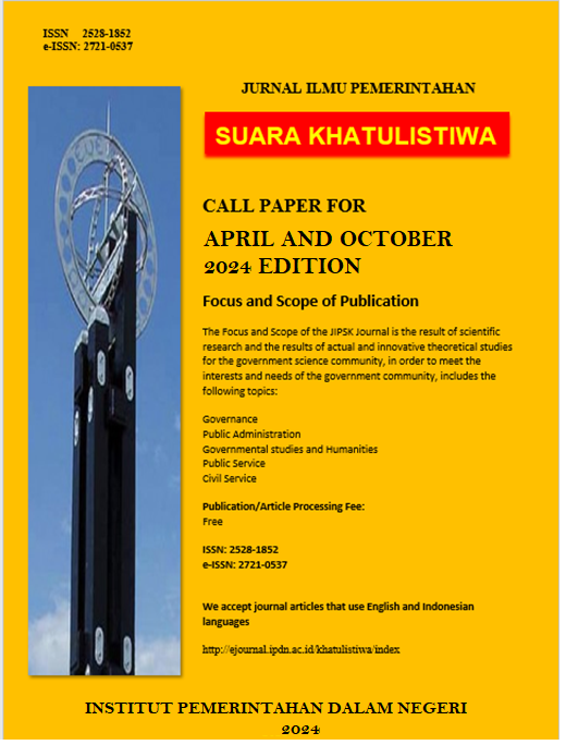 Jurnal Ilmu Pemerintahan Suara Khatulistiwa JURNAL ILMU PEMERINTAHAN SUARA KHATULISTIWA (JIPSK) (click here for archieve)